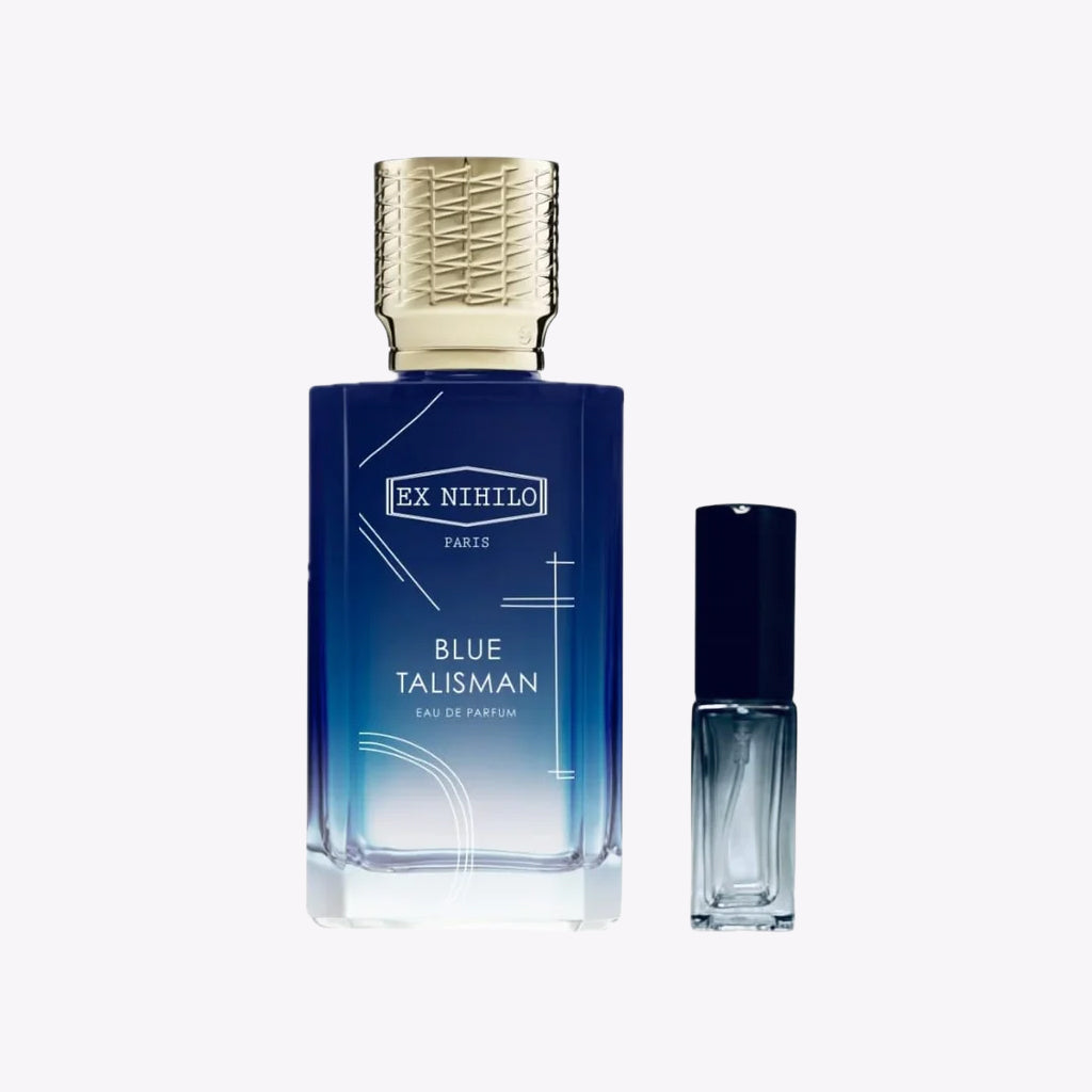 DE GEURBELEVING Abstract, modern en hypnotiserend—Blue Talisman is een eerbetoon aan 10 jaar exclusiviteit. De geur opent met een sprankelende explosie van bergamot, gember en een sappige hint van peer. Deze opening is niet zomaar fris; het is helder en verfijnd, als geslepen kristal. Terwijl de geur zich op de huid zet, mengt het hart zich met oranjebloesem en moderne houtnoten (Georgywood), wat een unieke, bijna verslavende diepgang geeft. De dry-down is waar de magie echt gebeurt: een krachtige basis van Akigalawood en muskus zorgt voor een aura van pure luxe die urenlang blijft fascineren.
