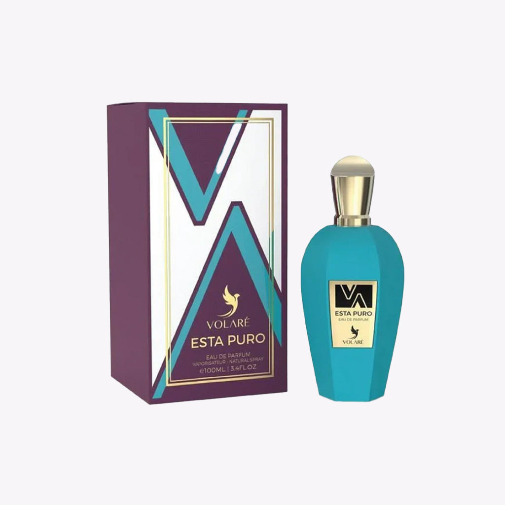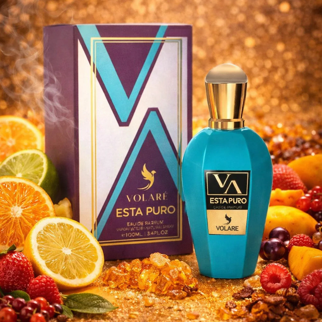 Esta Puro van Volare is een sprankelend frisse unisex geur geïnspireerd door Erba Pura van Xerjoff. Deze geur combineert levendige citrusnoten met fruitige accenten en een warme basis. Verpakt in een turquoise fles met gouden accenten voor pure luxe.